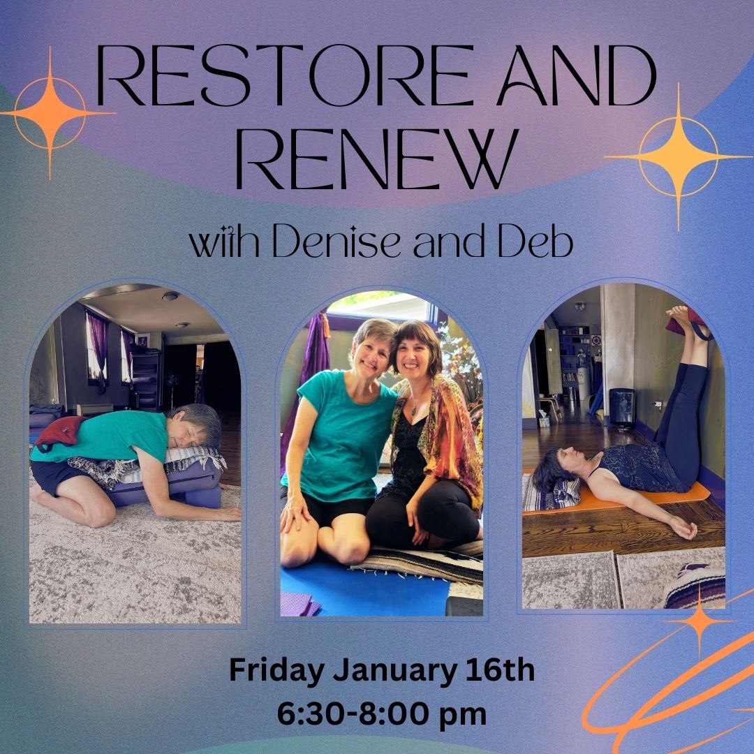 Deep relaxation helps calm the nervous system and the mind by reducing stimulation and drawing awareness into a place of peace. When we rest, the body’s intelligence can take over, and the stress hormones that can cause dis-ease will be reduced. In this session you will be supported in yoga poses with bolsters, blankets and blocks (and Denise and Deb!) giving your body permission to truly relax. See what REST really feels like. No yoga experience is necessary.
