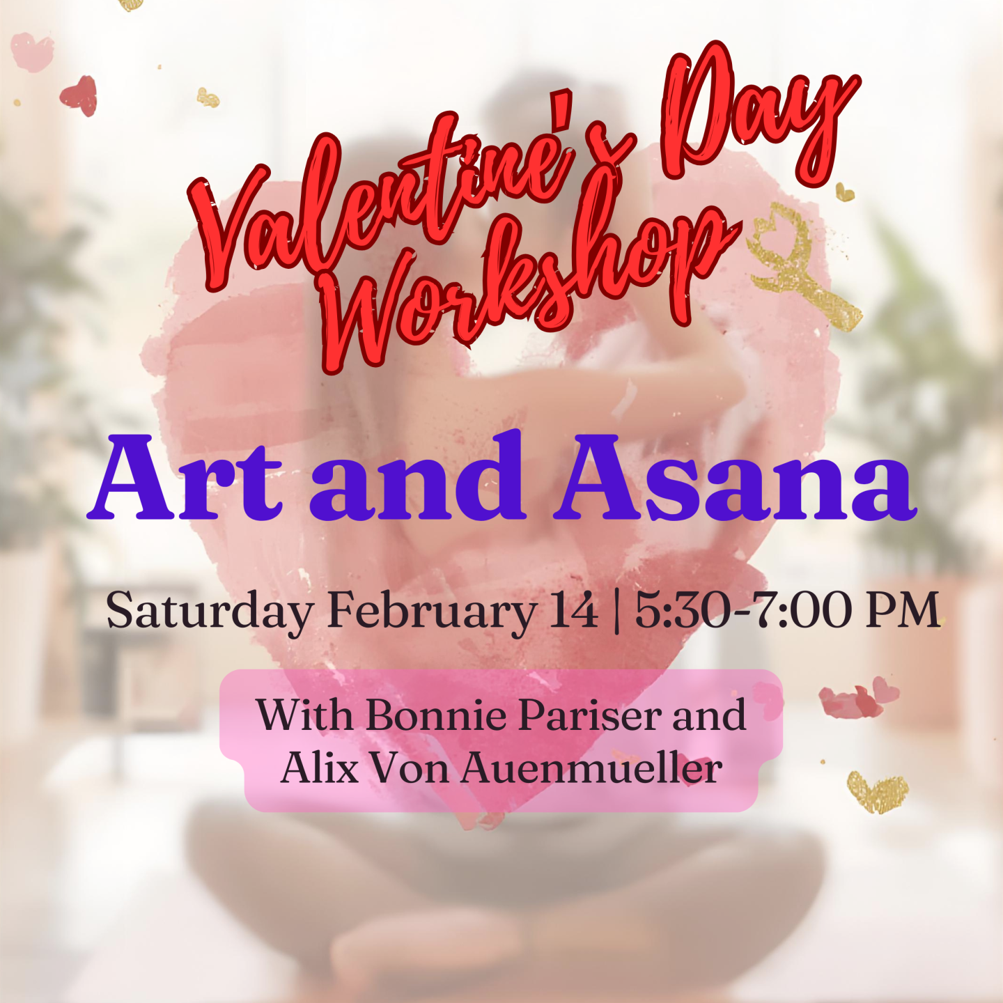 Join Bonnie and Alix for a special Valentine’s Day workshop designed to deepen connection, spark playfulness, and celebrate togetherness. Art therapist Alix von Auenmueller will guide partner-based art experiences that invite curiosity, expression, and shared discovery, and Bonnie will lead accessible partner yoga poses focused on trust, communication, and support.